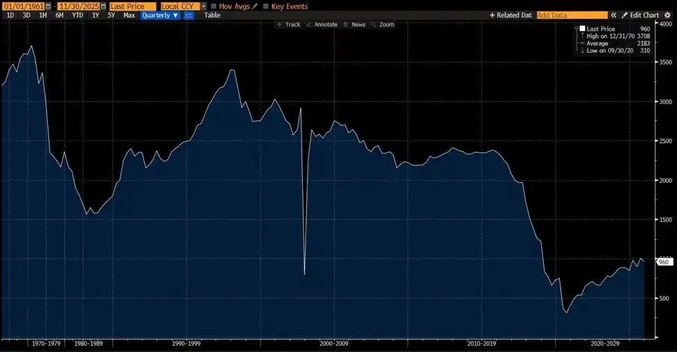 圖:委內瑞拉石油產量自 1965 年以來的變化(單位:千桶/日)來源:彭博社(Bloomberg)